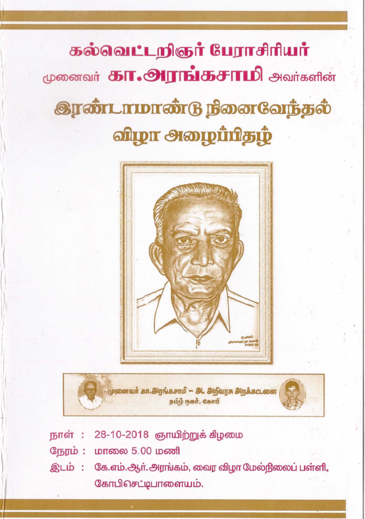பேராசிரியர் – முனைவர் கா.அரங்கசாமி அவர்களுக்கு இரண்டாமாண்டு நினைவேந்தல் விழா