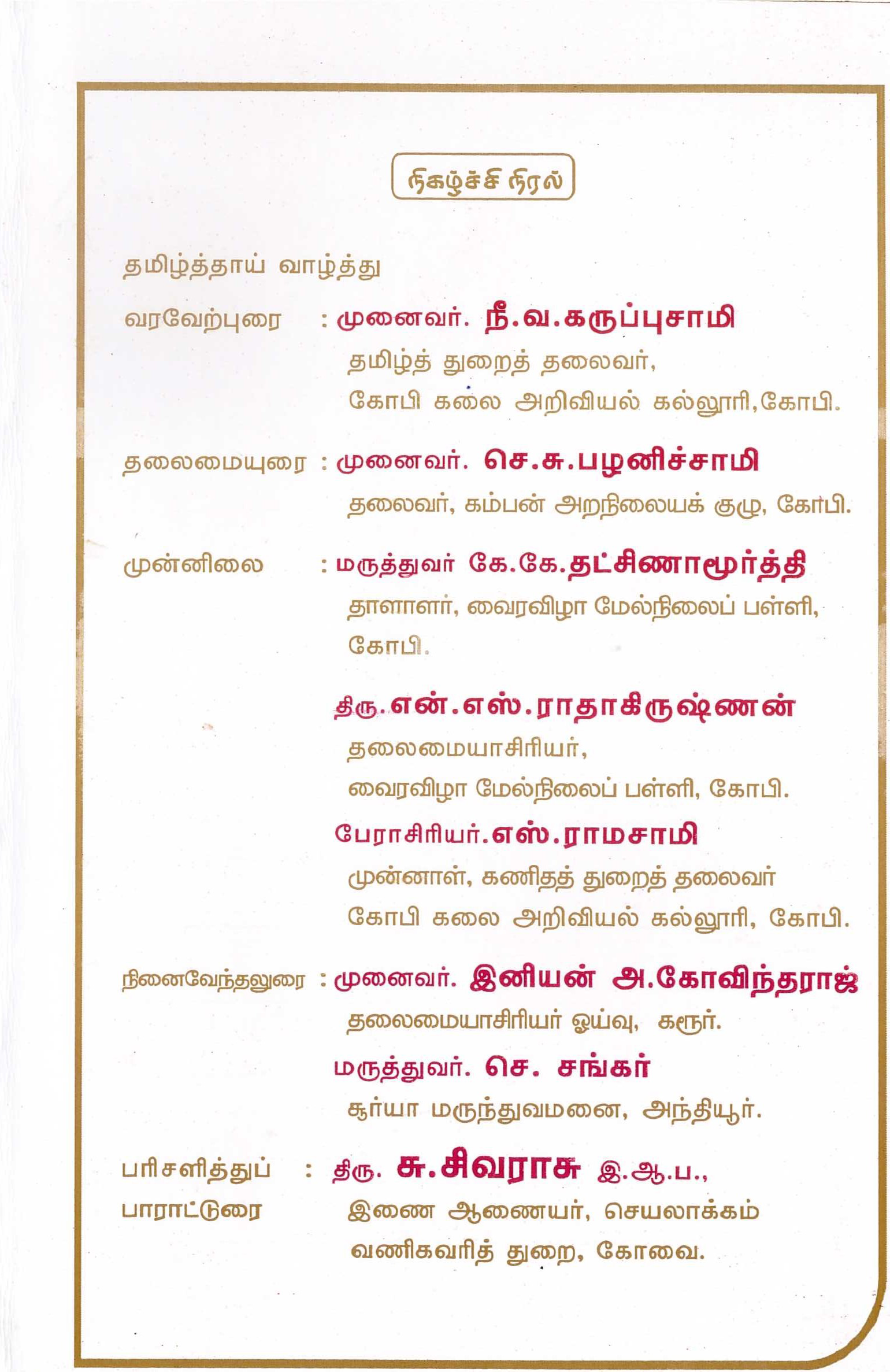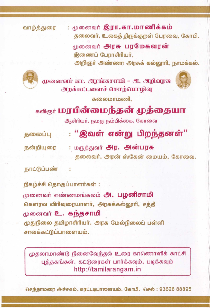 இடம்: K M R அரங்கம், வைர விழா மேல்நிலைப்பள்ளி, கோபிசெட்டிபாளையம்